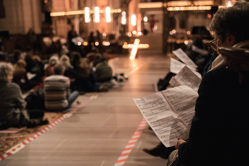 Besinnliche ökumenische Feier vor dem grossen Taizé-Lichterkreuz im Schein vieler Kerzen mit meditativen Liedern und wenigen Worten.